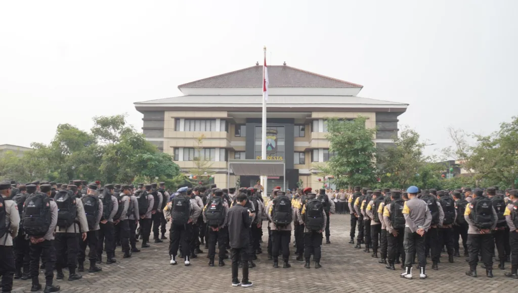 VISI.NEWS | SIDOARJO – Sebanyak 1.298 personel Polri mulai digeser ke lokasi Tempat Pemungutan Suara (TPS) yang tersebar di 18 kecamatan Kabupaten Sidoarjo. Pergeseran pasukan diawali dengan Apel Pergeseran Pasukan Pengamanan TPS Pilkada Serentak 2024 di Mako Polresta Sidoarjo, Senin (25/11/2024).