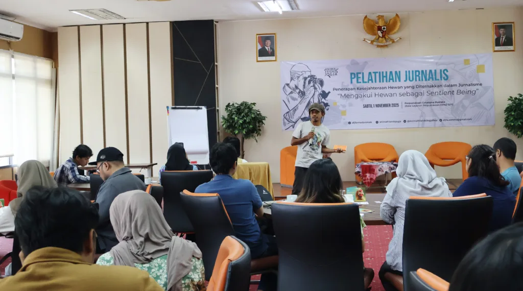 VISI.NEWS | YOGYAKARTA – Di tengah meningkatnya kesadaran publik terhadap isu lingkungan dan keberlanjutan pangan, kesejahteraan hewan yang diternakkan masih menjadi topik yang jarang mendapat porsi pemberitaan yang proporsional di media. Untuk menjembatani kesenjangan ini, Animal Friends Jogja (AFJ) menyelenggarakan Pelatihan Jurnalis: Penerapan Kesejahteraan Hewan yang Diternakkan dalam Jurnalisme—Mengakui Hewan sebagai Sentient Being, pada Sabtu, 1 November 2025, di Perpustakaan Grhatama Pustaka, DPAD DIY.