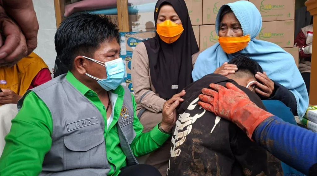 Asep Romy Romaya, yang dan juga sebagai Ketua MPC Pemuda Pancasila Kab. Bandung selain mengunjungi lokasi sempat menemui para korban terdampak yang selamat dari Bencana.