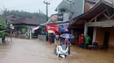 VISI.NEWS | SUKABUMI – Seorang warga mengalami luka akibat longsor yang terjadi di Kecamatan Sukalarang, Kabupaten Sukabumi, pada Sabtu (11/4/2026) sore. Peristiwa tersebut terjadi di Kampung Gria Sukamaju RT 01/02, Desa Sukamaju, saat hujan deras mengguyur wilayah itu. Tebing tanah longsor dan materialnya menerjang sebuah rumah hingga menyebabkan kerusakan pada
