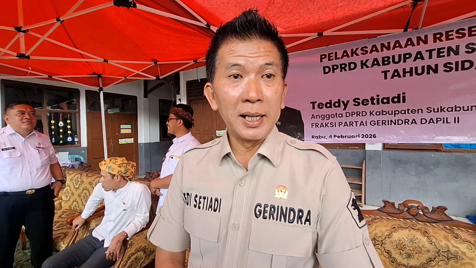 “Untuk sekarang ini, tidak bisa jadi harus jelas dan dilengkapi dokumen yang ada. Jadi bilamana di reses ini ada bapak-bapak, ibu-ibu yang hadir menyampaikan aspirasi untuk tahun selanjutnya, harus dilengkapi dengan dokumen yang ada [bentuknya] itu proposal dari RT, RW, sampai kepala desa, jadi wajib seperti itu,” ujar Teddy dalam kegiatan reses di MI Addawah, Desa Sundawenang, Kecamatan Parungkuda, Rabu (4/2/2026).