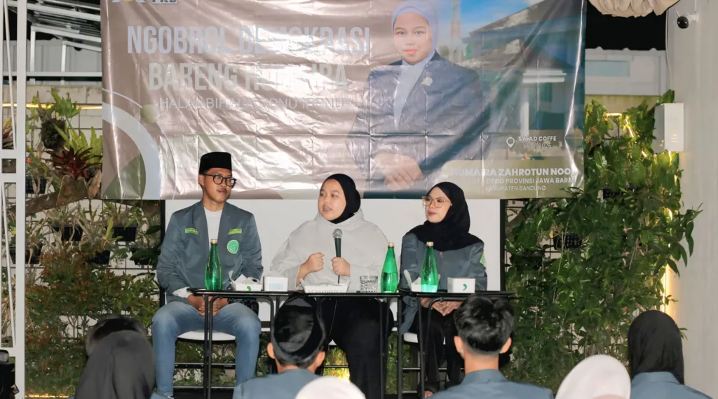VISI.NEWS | KAB. BANDUNG – Upaya membangun kesadaran politik generasi muda terus didorong melalui pendekatan yang lebih inklusif dan relevan. Anggota DPRD Provinsi Jawa Barat, Humaira Zahrotun Noor, berkolaborasi dengan Pimpinan Cabang (PC) IPNU dan IPPNU Kabupaten Bandung menggelar kegiatan ‘Ngobrol Demokrasi Bersama Humaira (Halal Bihalal IPNU IPPNU)’, di Sa’ad Coffe, Kabupaten Bandung, Jumat (17/4/2026).