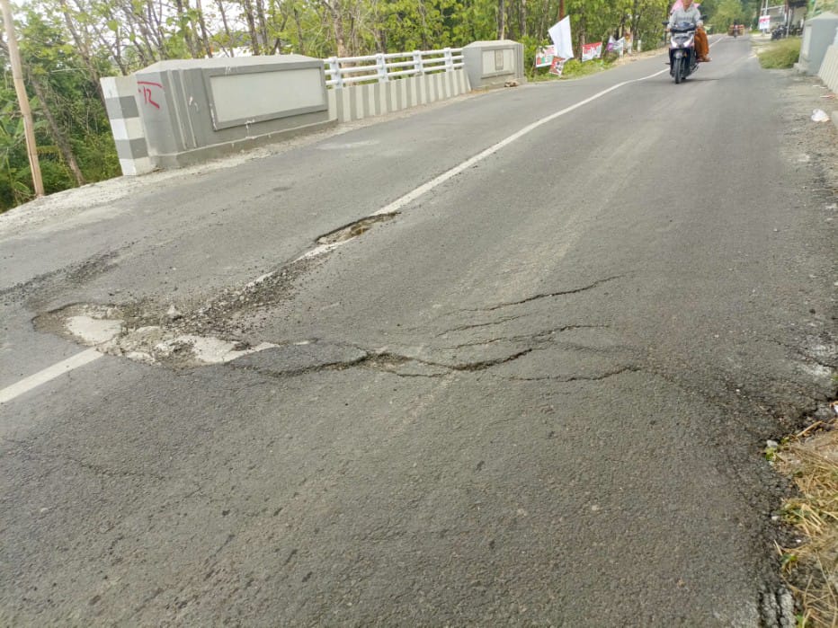 Jembatan yang baru selesai pengerjaannya tahun 2023 lalu itu mengalami penurunan tanah timbunan jalan pendekat jembatan (oprit) dan mengakibatkan ambles serta berlubang.