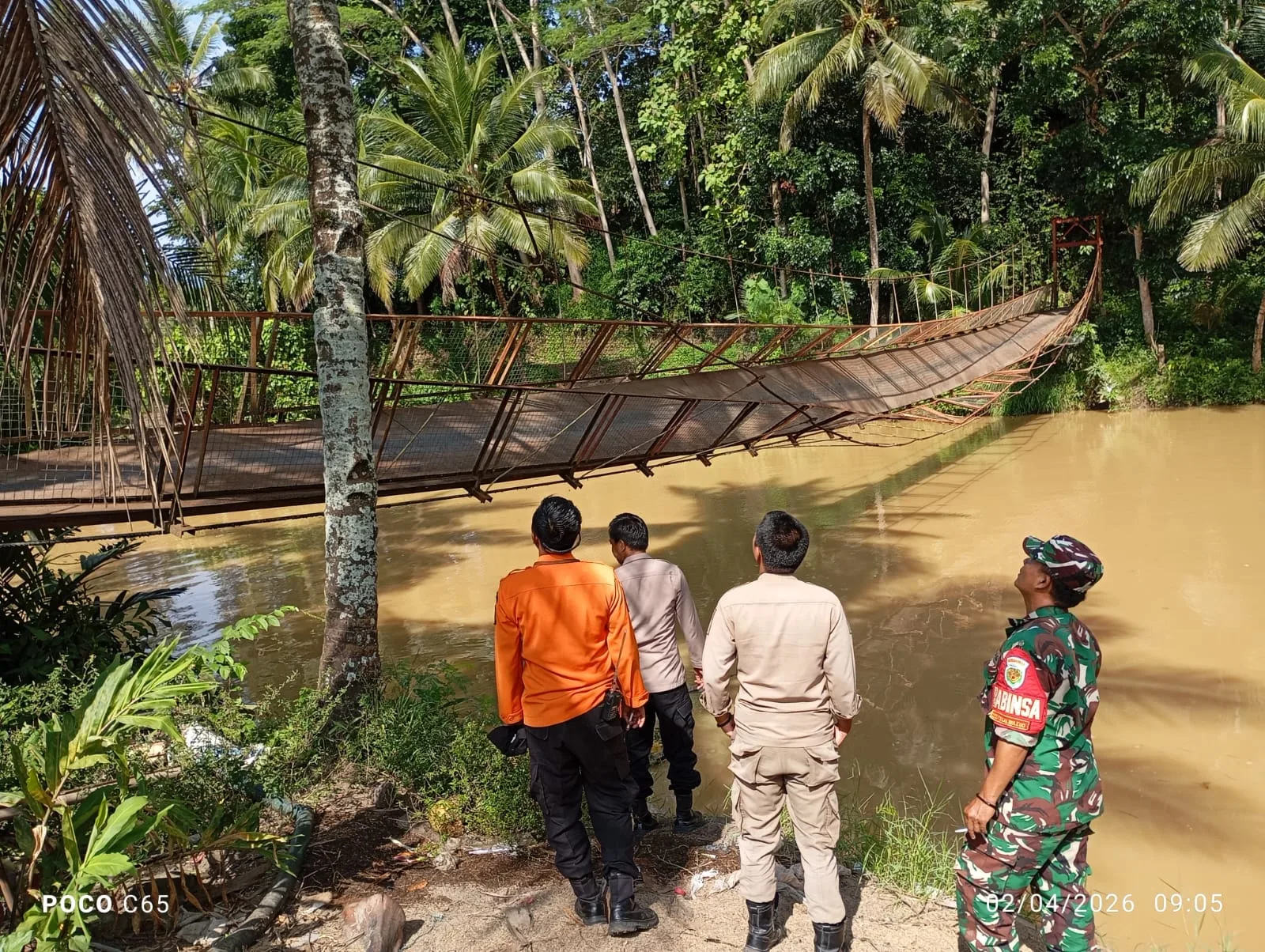 Akibat kejadian tersebut, lima warga bersama satu sepeda motor terjatuh ke sungai. Tidak ada korban jiwa dalam insiden ini, namun para korban mengalami luka ringan berupa lecet. @andri
