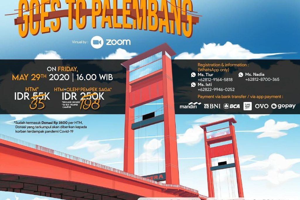 “Ayo ikutan #Virtual Tour Goes To Palembang yang akan diselenggarakan pada hari Jumat,29 Mei 2020,pukul 16.00 WIB dengan biaya tiket tur virtual Rp35 ribu/orang (normal) dan Rp 198 ribu (bundling dengan 1 (satu) paket Pempek Saga), katanya.