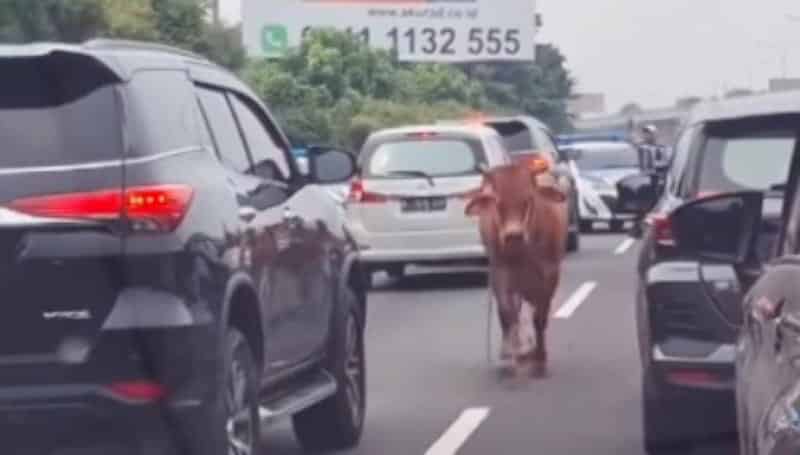 VISI.NEWS | JAKARTA – Sebuah insiden tak terduga terjadi di Jalan Tol Jagorawi arah Cibubur, Jakarta Timur, pada Minggu (16/6/2024) pagi. Seekor sapi kurban berhasil lolos dari kendali pemiliknya dan masuk ke jalan tol, menyebabkan kemacetan lalu lintas yang signifikan.