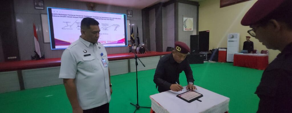 VISI.NEWS | SIDOARJO – Pemberantasan Hp, pungli, dan narkoba (Halinar) terus digaungkan oleh Lapas Kelas I Surabaya Kanwil Kemenkumham Jatim, salah satunya dengan melaksanakan apel deklarasi dan penandatangan pakta integritas bersama Badan Narkotika Nasional Kabupaten (BNNK) Sidoarjo yang bertempat di Aula MD Arifin, Lapas Kelas I Surabaya, Rabu (06/11/2024).