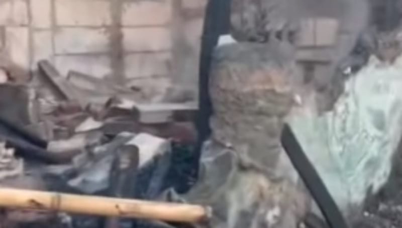 Rumah Hangus Terbakar: Beberapa rumah mengalami kerusakan parah akibat terbakar. Dinding dan atap rumah hangus terbakar, meninggalkan puing-puing dan sisa-sisa material bangunan.