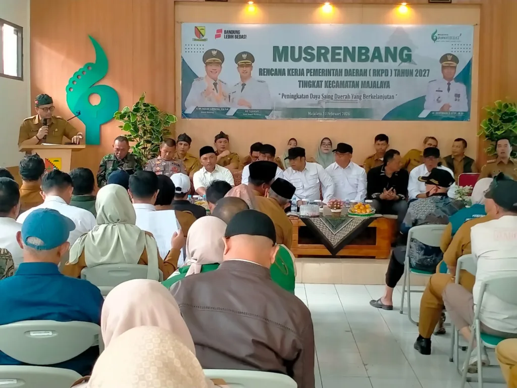 Musrenbang ini dilaksanakan di Aula Kecamatan Majalaya, Kabupaten Bandung, Selasa (10/2/2026) dengan tema ‘Peningkatan Daya Saing Daerah’ yang dihadiri sejumlah Anggota DPRD Kabupaten Bandung asal Dapil 5 (Kecamatan Majalaya, Solokanjeruk, Ibun dan Paseh).