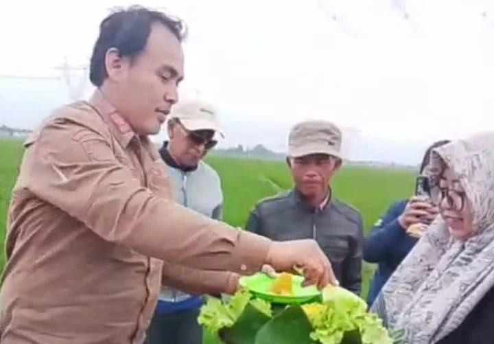 VISI.NEWS | KAB. BANDUNG – Sejumlah warga terlihat suka cita sebagai wujud rasa syukur atas rampungnya pembangunan jalan usaha tani yang membentang di tengah-tengah hamparan sawah yang tengah menghijau di Desa Haurpugur, Kecamatan Rancaekek, Kabupaten Bandung, Rabu (28/1/2026).