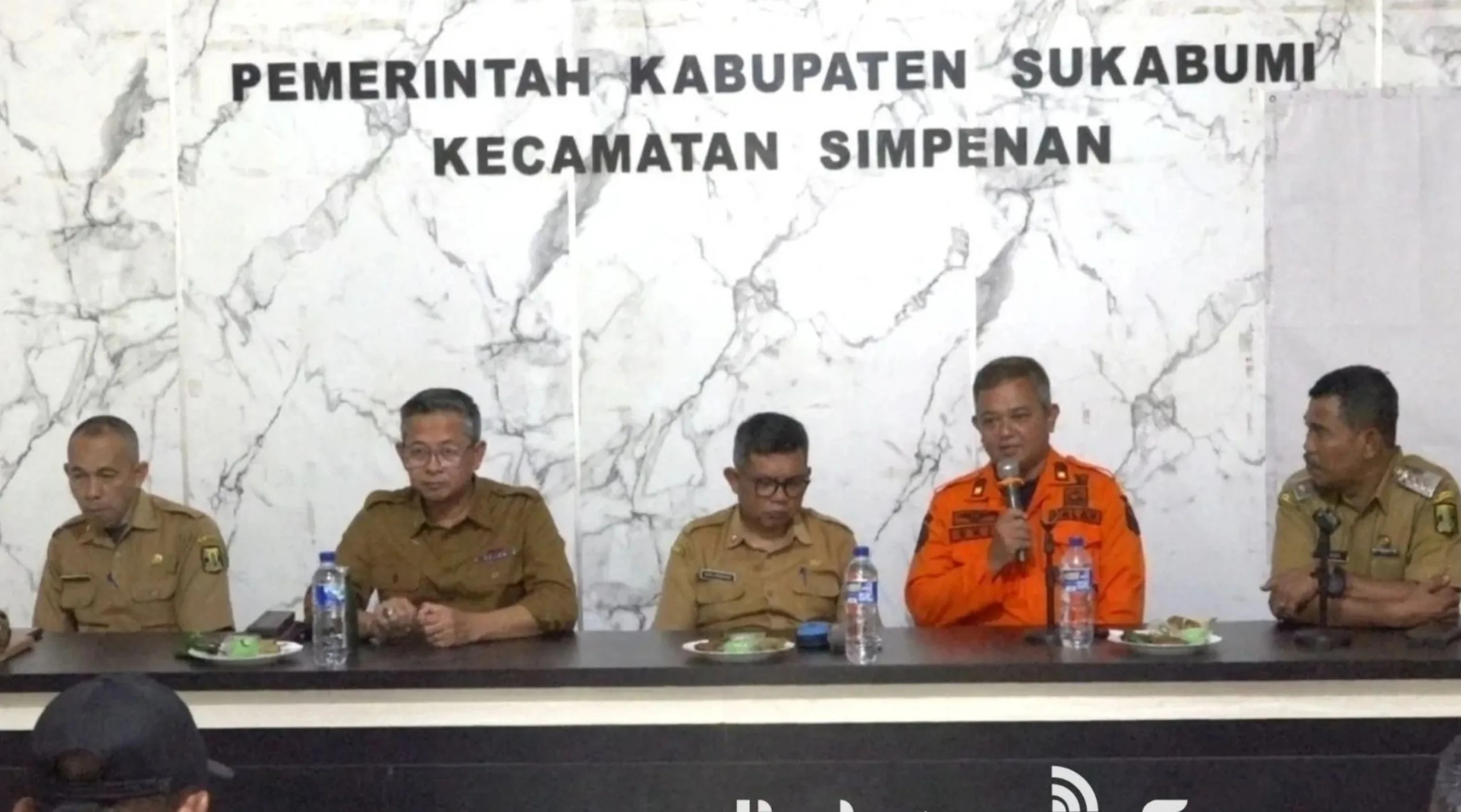 Rapat koordinasi di aula Kantor Kecamatan Simpenan, Senin (12/1/2026) dihadiri Kepala Dinas Pemberdayaan Masyarakat dan Desa Kabupaten Sukabumi, Ahmad Samsul Bahri, Kepala Pelaksana Badan Penanggulangan Bencana Daerah Kabupaten Sukabumi, Eki Radiana Rizki, Camat Simpenan, unsur Forum Koordinasi Pimpinan Kecamatan Simpenan, serta perwakilan dari Desa Cibuntu, Sangrawayang, Cidadap, dan Loji. Sementara Desa Mekarasih, Kertajaya, dan Cihaur belum dapat hadir karena masih terisolasi.