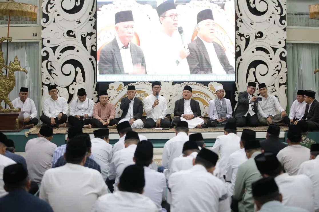 VISI.NEWS | KAB. BANDUNG – Pemerintah Kabupaten (Pemkab) Bandung melaksanakan kegiatan Tasyakur Bin Ni’mat dan Peringatan Nuzulul Qur’an 1447 Hijriah tingkat Kabupaten Bandung Tahun 2026 di Rumah Dinas Bupati Bandung, Soreang, Jumat (6/3/2026) sore.
