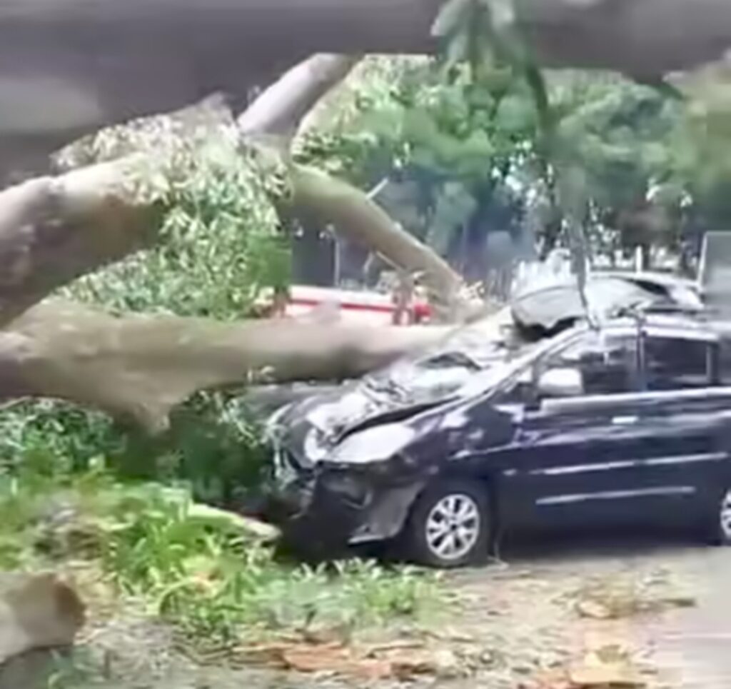 “Saya berada di kejadian dan kebetulan mobil saya juga imbas namun tidak terlalu parah, awal mulanya ada bunyi suara seperti pohon mau tumbang pas dilihat pohon mau tumbang karena akarnya tidak bisa menopang pohon tersebut,”jelasnya saat di hubungi tim visi.news.