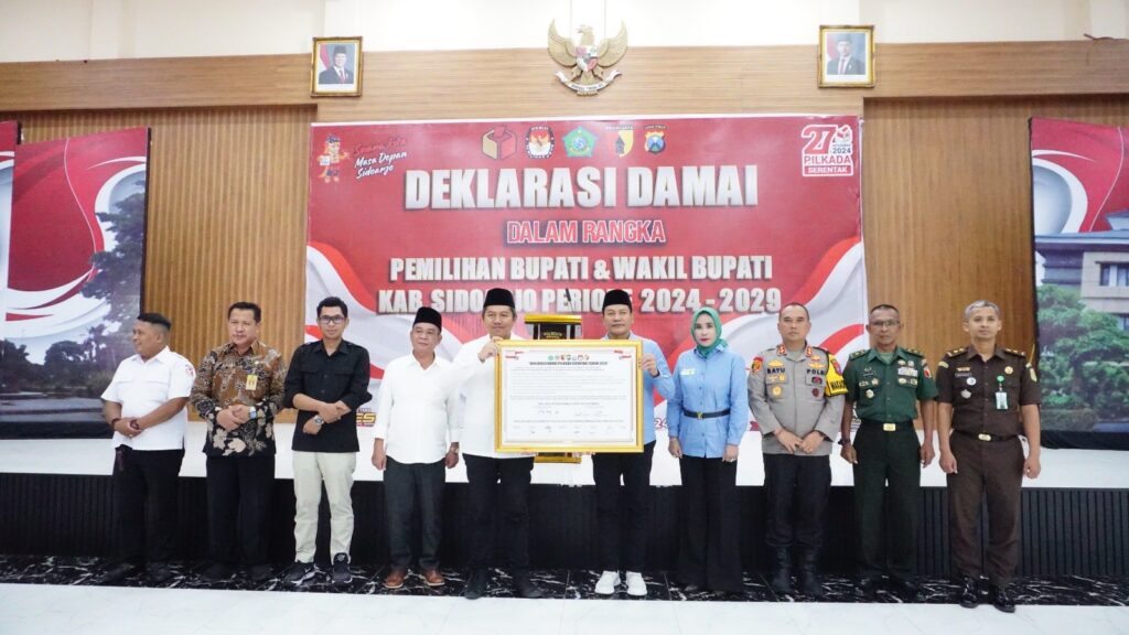 “Patut kita syukuri, pada Pilkada serentak 2024 ada niat baik bersama dari jajaran Forkopimda, Paslon Calon Bupati dan Wakil Bupati Sidoarjo, para tokoh agama, parpol dan tim pemenangan untuk deklarasi damai siap menyukseskan Pilkada serentak 2024 dengan aman, damai dan kondusif. Ini adalah wujud kebaikan bersama termasuk keinginan semua masyarakat luas, bahwa kerukunan, persatuan dan kesatuan adalah hal yang harus dijunjung tinggi bersama,” jelasnya. @redho