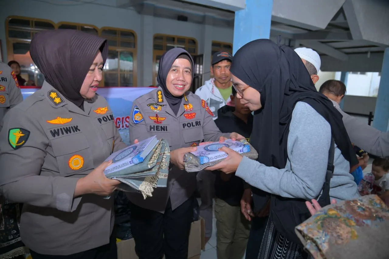 VISI.NEWS | KAB. BANDUNG BARAT – Guna mempertebal keimanan masyarakat di tengah musibah bencana, Polwan Polda Jawa Barat yang dipimpin oleh Kabid Keu Polda Jabar Kombes Pol. Heni Kresnowati didampingi oleh Dir PPA dan PPO Kombes Rumi Untari serta Pakor Polwan Polda Jabar AKBP Dra. Wiwik Indrawati menyalurkan bantuan berupa peralatan ibadah kepada para pengungsi terdampak bencana, pada Senin (26/1/2026).