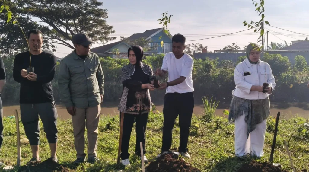 Humaira didampingi Ketua DPRD Kabupaten Bandung Renie Rahayu Fauzi dan Anggota DPRD Kabupaten Bandung Dudi Mustopa melaksanakan penanaman pohon sebagai wujud peduli terhadap lingkungan sekitar.