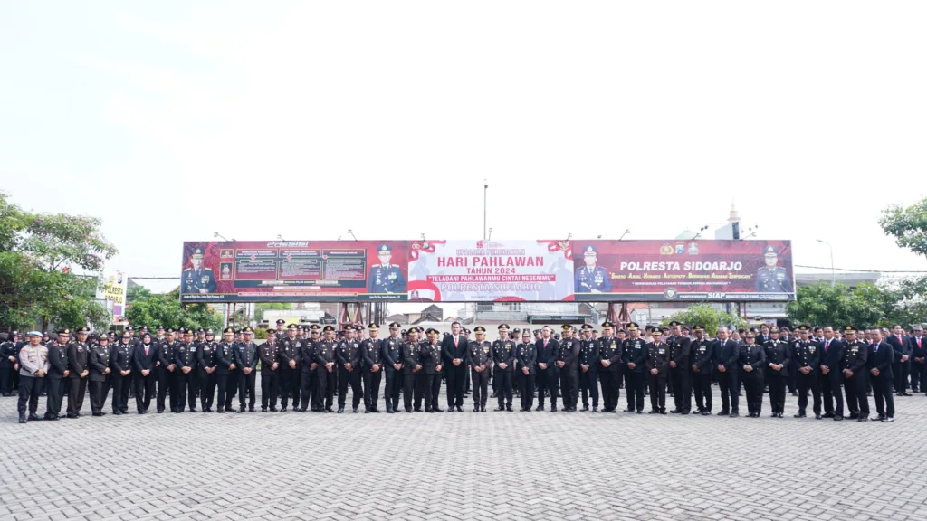 VISI.NEWS | SIDOARJO – Upacara peringatan Hari Pahlawan 10 November 2024 dilaksanakan Polresta Sidoarjo di lapangan apel Mako Polresta Sidoarjo, dengan dipimpin Wakapolresta Sidoarjo AKBP I Made Bayu Sutha Sartana.