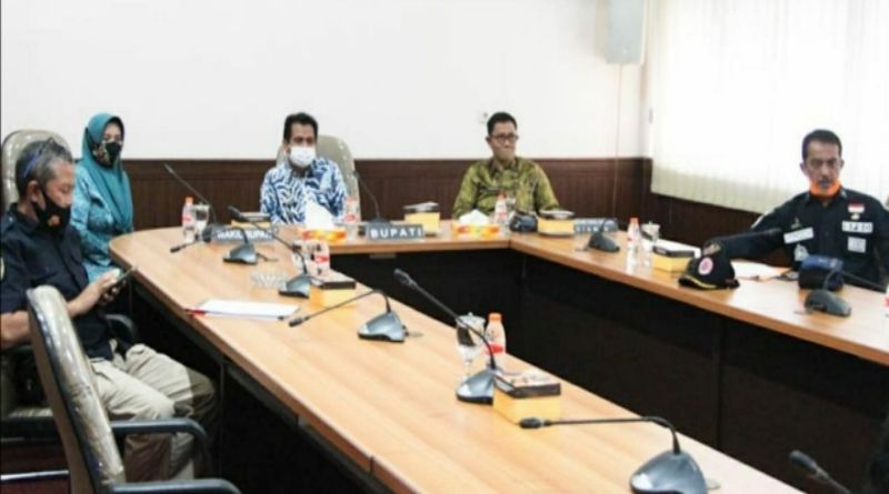 VISI.NEWS – Wakil Bupati Ciamis Yana D Putra mengikuti rakor peningkatan efektivitas pencegahan dan pengendalian virus corona atau Covid-19 dari Ruang Operation Room Sekretariat Daerah Kabupaten Ciamis, Kamis (27/8).