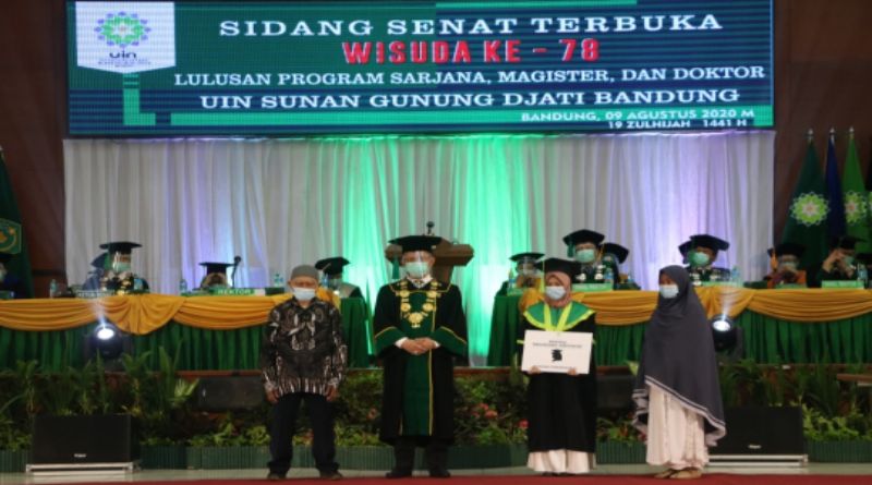 VISI.NEWS – Kendati dalam suasana pandemi Covid-19, Rektor UIN Sunan Gunung Djati Bandung, Prof. Dr. H. Mahmud, M.Si, melantik 800 lulusan pada Wisuda ke-78 secara virtual melalui telekonferensi aplikasi zoom dan disiarkan langsung pada kanal YouTube, Facebook UIN Sunan Gunung Djati Bandung, Ahad (9/8)